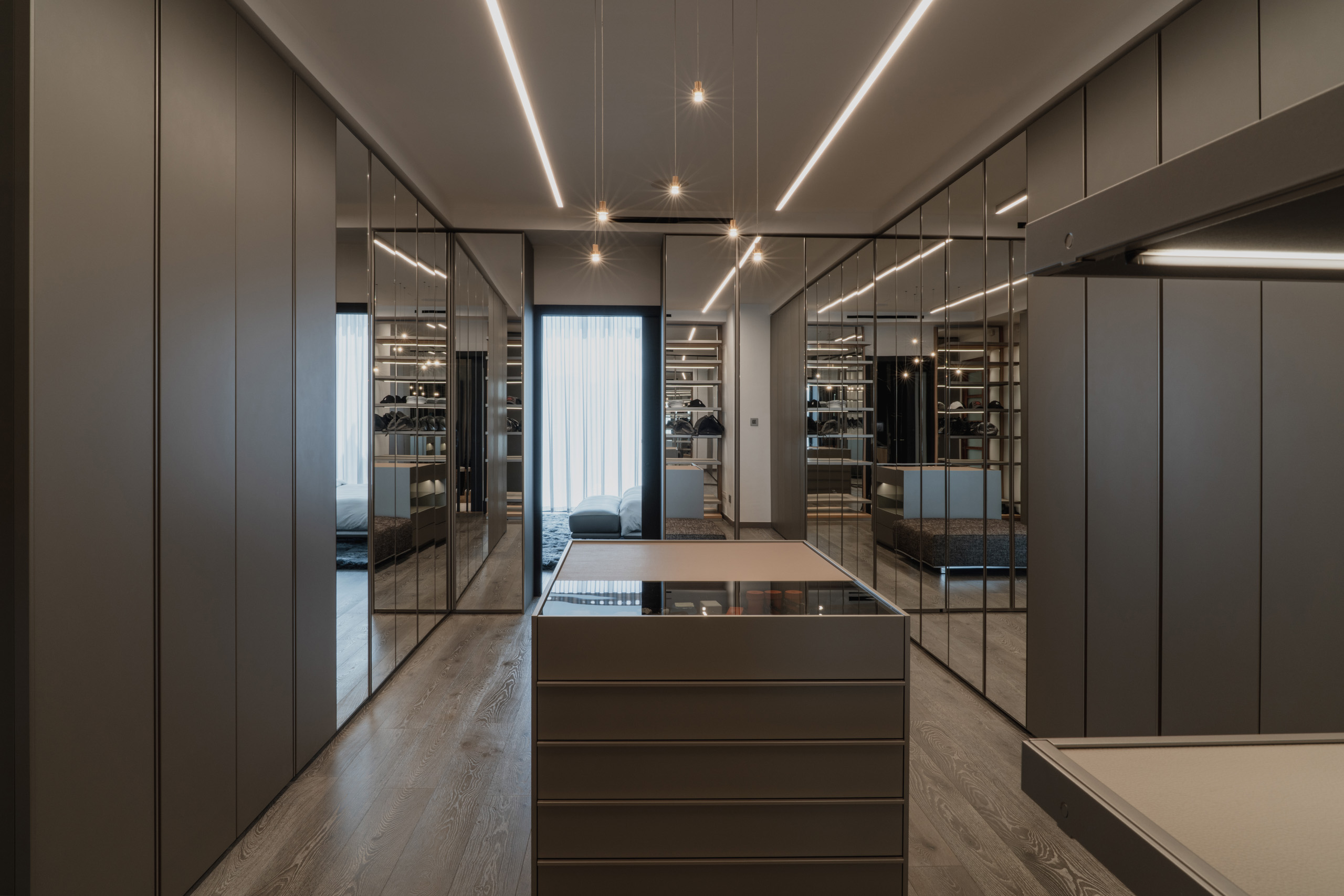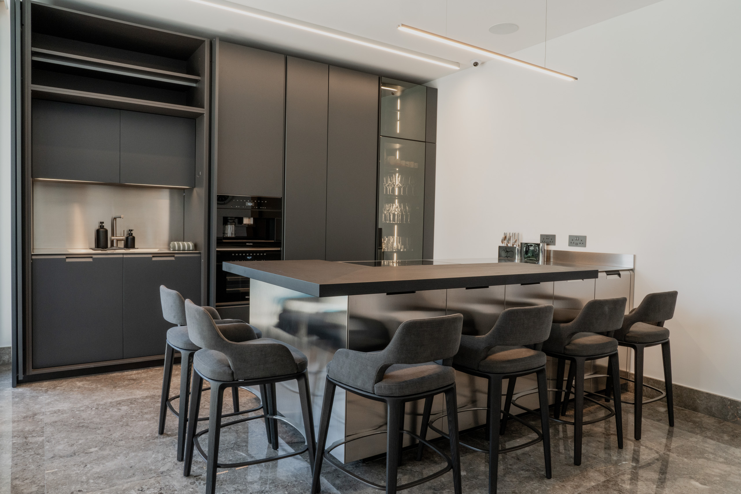 Pocket doors where used in the various kitchens to hide away the sinks and preparation area. The bathrooms had separate rooms for the toilet. We worked closely with Astral for the intelligent system and this incorported features that meet functionality and luxury.